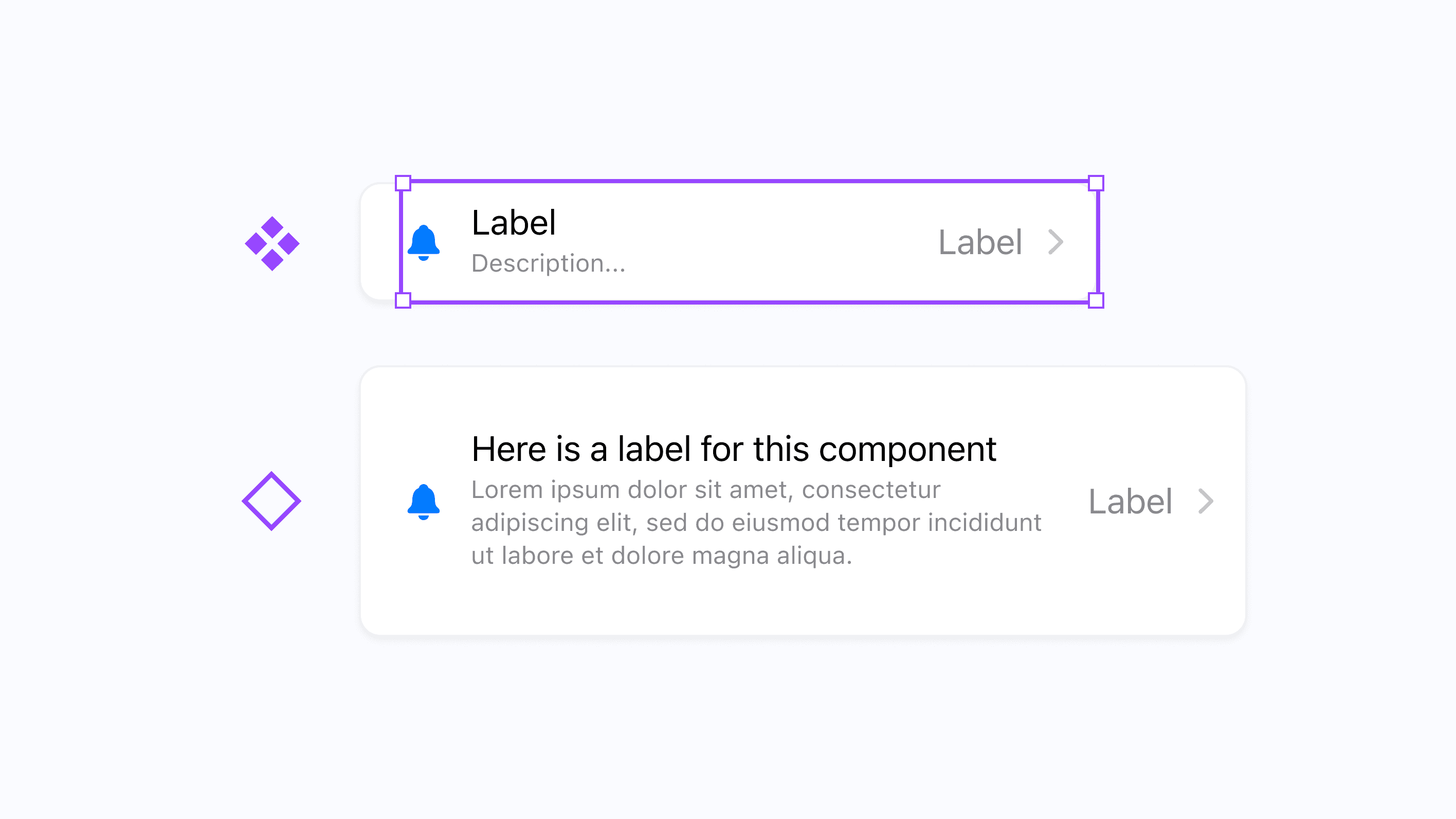 Finally, it’s time to add the remaining content as you continue to make adjustments. In this case, I’ll add the title, description, label, and chevron while making changes to the sizing and alignment properties that Auto Layout allows. As I go, I still have this point of reference to look at, and because the instance has resized substantially, I know if the changes I’m making result in the correct visual layouts!