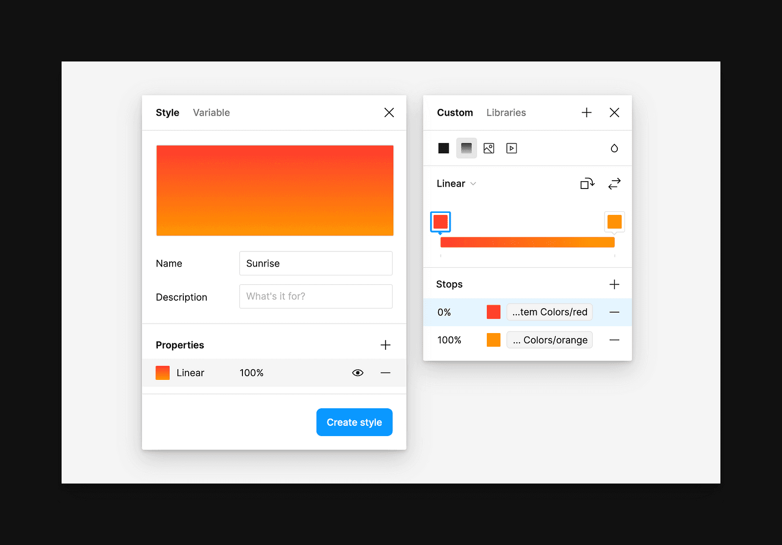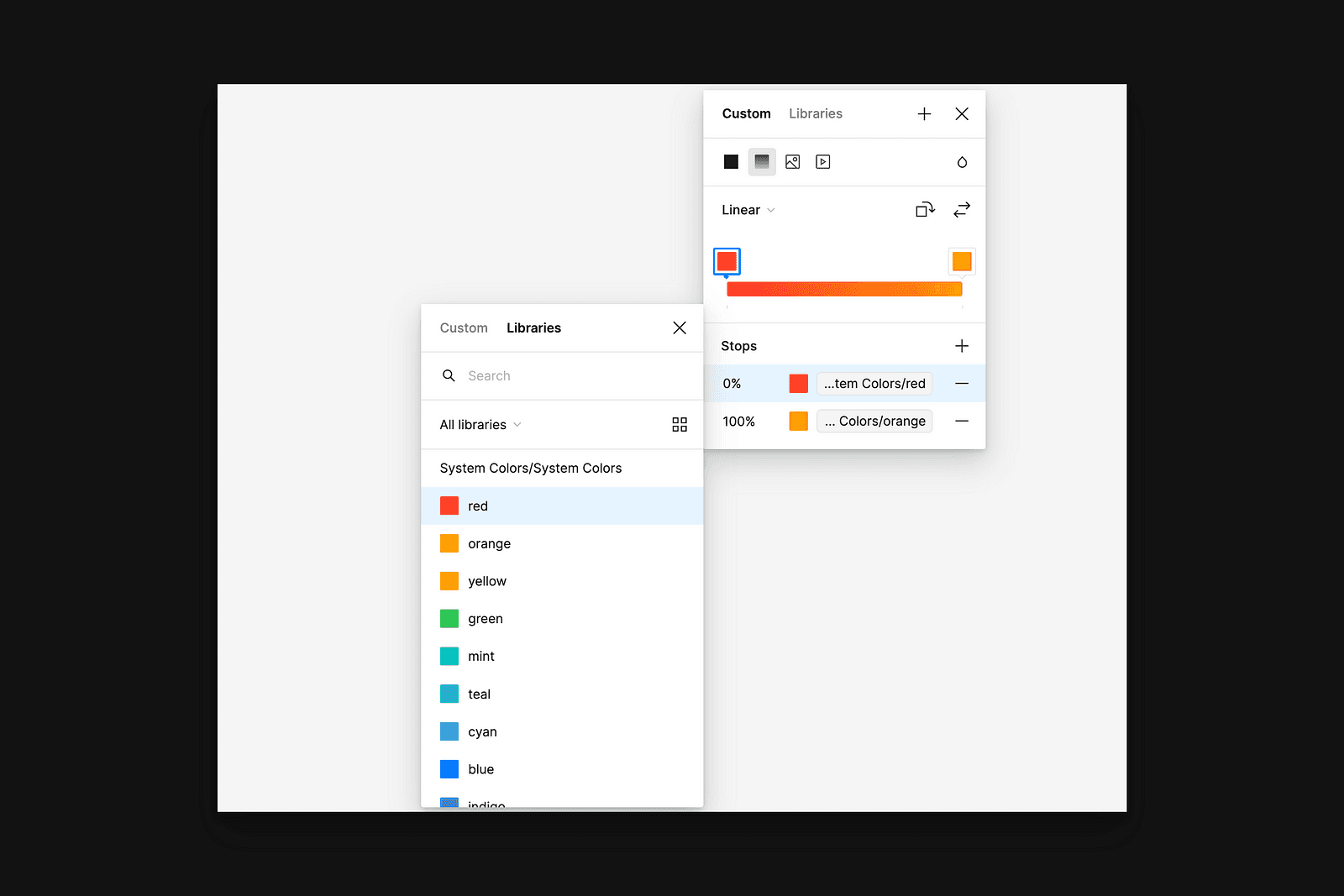However, throughout the year that variables have been available, they couldn’t be used everywhere throughout Figma, which included both text (more on that soon!) and within gradients. The lack of support meant that either styles or one-off values were still necessary, often leading to disconnects and mismatches between the design system and the design.