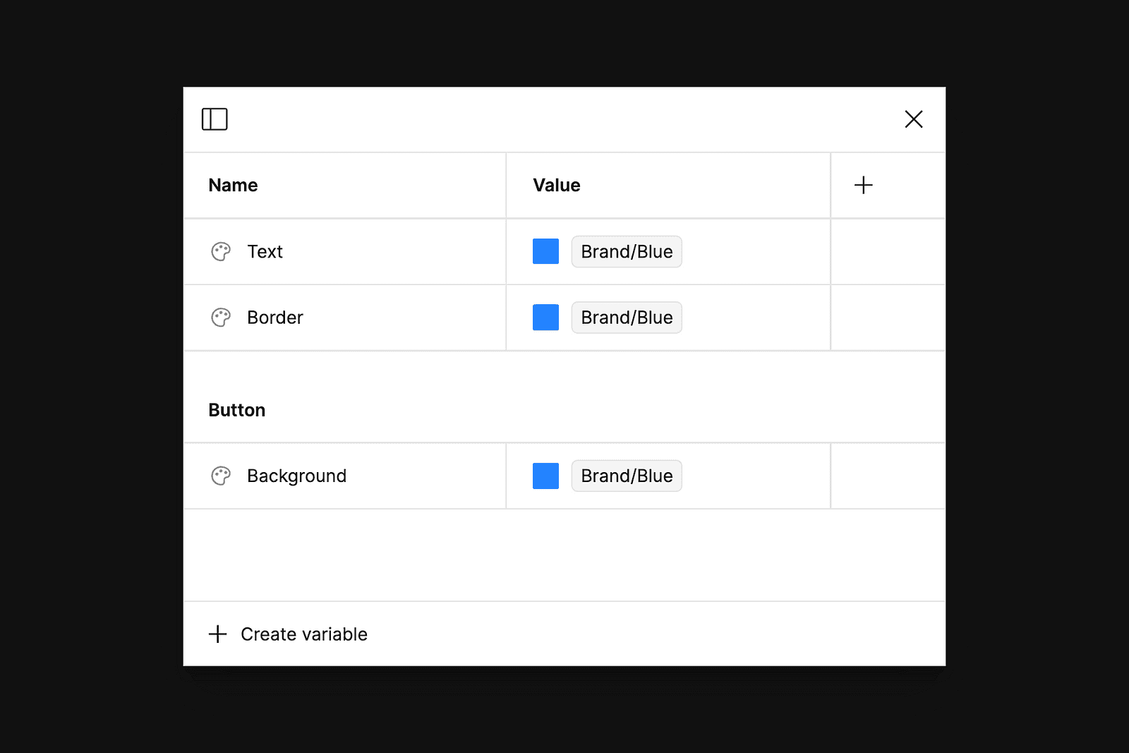 If you haven’t tried them yet, variables are a feature that allows us to create, store, and reuse values such as numbers or colors throughout Figma. Unlike styles, one of the first tools in Figma that let us do this, the superpower of variables is that they allow us to create links between the definitions and applications of those values. This ability means we can define a variable such as brand/blue and use that exact value of blue within other variables, such as those supporting button backgrounds, borders, or text strings. If our color value within the brand/blue variable ever changes, each referenced variable would receive the update—no more updating tens or hundreds of styles with the new color value.