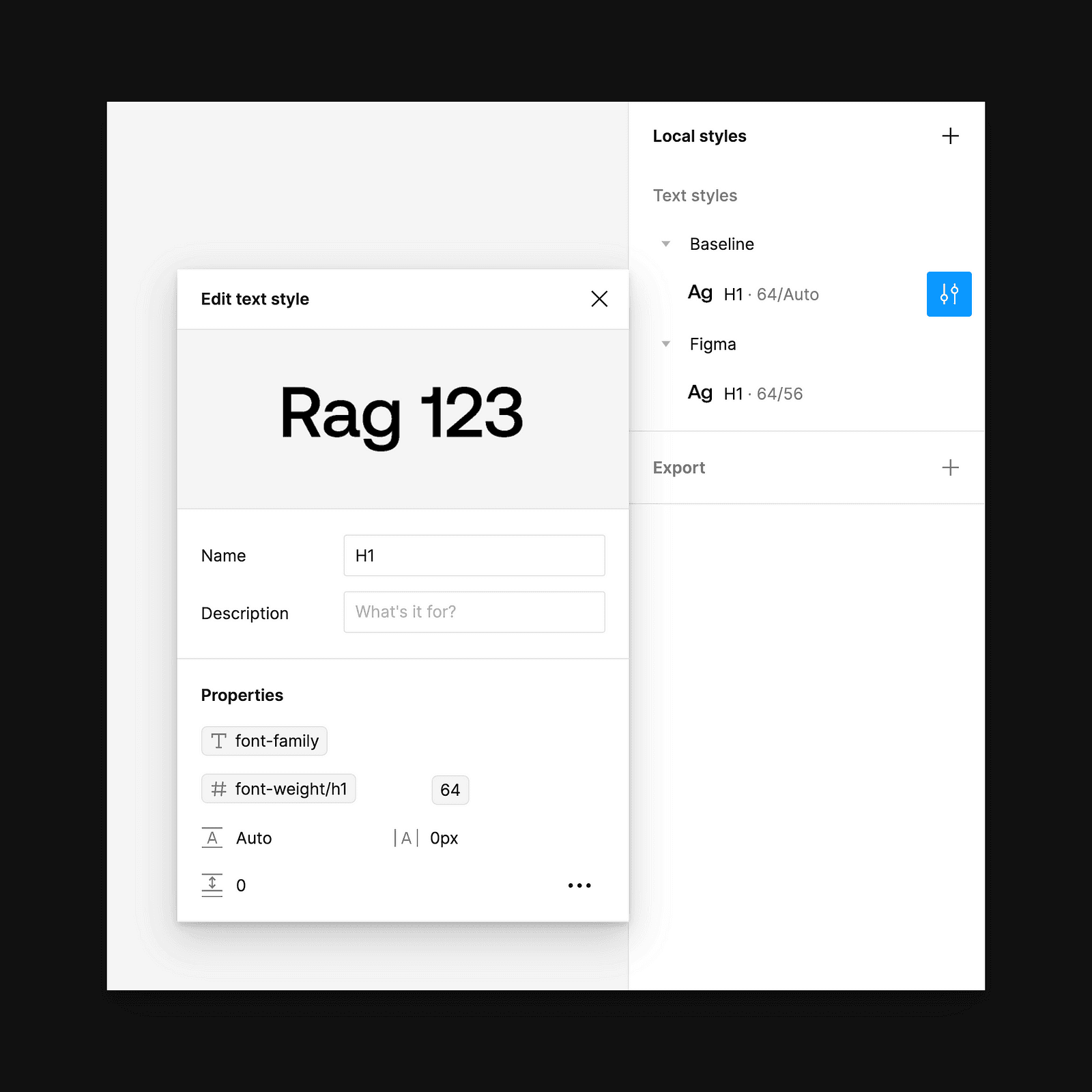 With these variables created, we can apply them to their relevant fields and then choose to save the combination as a singular style, such as H1 or H2. In this example, I put the brand first with the style following, where Baseline’s H1 style reads Baseline/H1 and Figma’s H1 would read Figma/H1. Using modes, designers could then adjust between the desktop or mobile size and style options.
